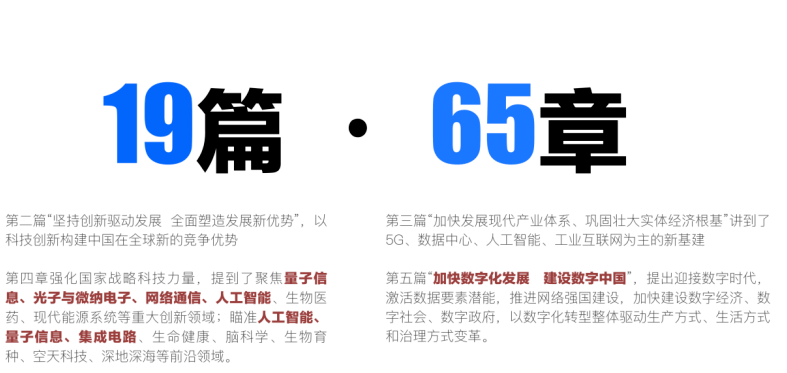 正因為數(shù)字經(jīng)濟如此之重要,中央一號文件、中華人民共和國國民經(jīng)濟和社會發(fā)展第十四個五年規(guī)劃和2035年遠(yuǎn)景目標(biāo)綱要都提到了數(shù)字經(jīng)濟,國務(wù)院正式印發(fā)了《“十四五”數(shù)字經(jīng)濟發(fā)展規(guī)劃》,明確了“十四五”時期推動數(shù)字經(jīng)濟健康發(fā)展的知道思 想、基本原則、發(fā)展目標(biāo)、重點任務(wù)和保障措施,國家發(fā)改委、中華人民共和國工業(yè)和信息化部、國資委、國家住建部、商務(wù)部、交通運輸部、農(nóng)業(yè)農(nóng)村部等都從不同層面做出了數(shù)十項的部署和安排,因為不在本文主要闡述范圍內(nèi),不再贅述。